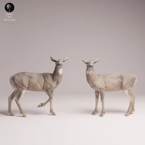 Add a touch of natural realism to your scenes with the White-tailed Deer-does, a masterfully crafted miniature (Model ID: Anml-260115) from the wildlife experts at Animal Den Miniatures. This set features gracefully posed does, capturing the gentle essence of the iconic white-tailed deer.
